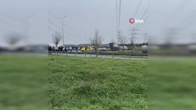 Hasdal Yolu Kemerburgaz istikametinde cezaevi nakil aracı devrildi