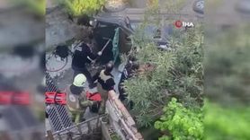 Bursa Yıldırım'da otomobil merdivenlerden yuvarlandı