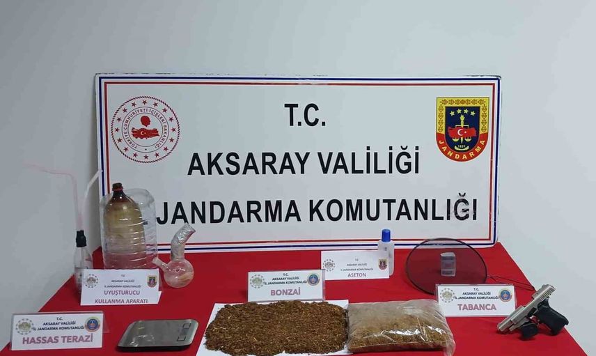 Aksaray'da jandarma ekipleri Z.Ö.'nün ikametinde 789 gram bonzai, ruhsatsız tabanca ve çeşitli materyaller ele geçirerek şüpheliyi tutukladı.