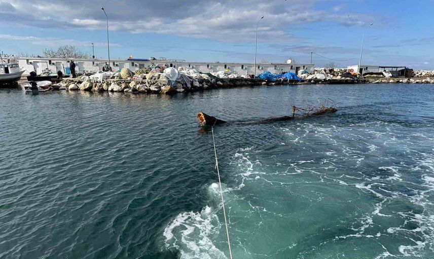 Yalova açıklarında feribotların seyir güzergâhına yakın noktada tespit edilen yüzen ağaç, ekiplerce güvenlik önlemleri alınarak Merkez Balıkçı Barınağı'na çekildi.