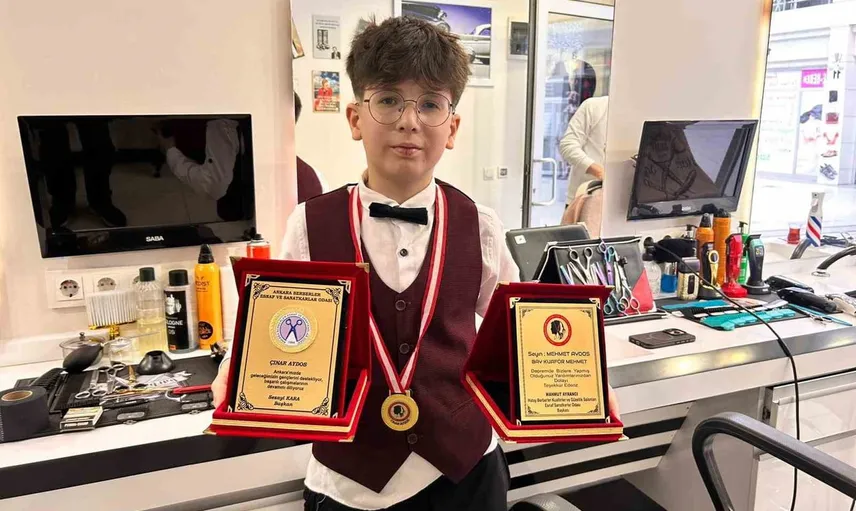 13 yaşındaki berber Çınar Aydos, Ankara'dan uluslararası hedeflere