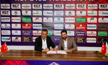 Nesine 2. Lig ekiplerinden KCT 1461 Trabzon FK'de teknik direktörlük görevine getirilen Olcay Şahan (ortada) ile sezon sonuna kadar sözleşme imzalandı.