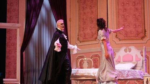 Tamer Karadağlı'nın rol aldığı 'Dracula: Bir Dehşet Komedisi' adlı oyun, Konya'daki festivalin dördüncü gününde sahnelendi.