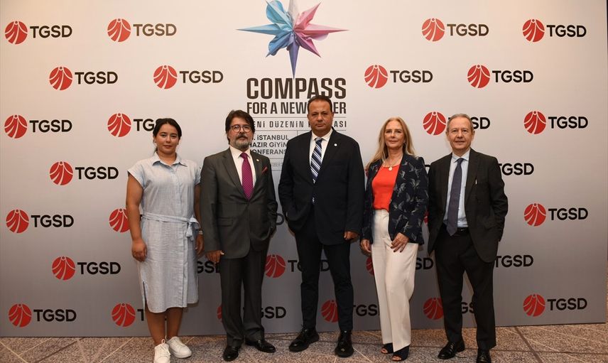 Türkiye Giyim Sanayicileri Derneği (TGSD) Müşterek Başkanı Ümit Özüren, 7-8 Ekim'de düzenlenecek 18. İstanbul Hazır Giyim Konferansı'nda sektöre ilişkin pek çok konunun ele alınacağını, ihracat kapasitesini artıracak ikili iş görüşmelerinin yapılacağını bildirdi. Türkiye Giyim Sanayicileri Derneği (TGSD) tarafından düzenlenen toplantıya (soldan sağa) TGSD Yönetim Kurulu Üyesi Ayşegül Kaya (solda) TGSD Müşterek Başkanları Ümit Özüren (sol 2) ve TGSD Müşterek Başkanı Toygar Narbay (ortada), TGSD Yönetim Kurulu Başkan Yardımcısı Servet Karaalioğlu (sağ 2) ve TGSD Ekonomi Danışmanı Can Fuat Gürlesel (sağda) katıldı.