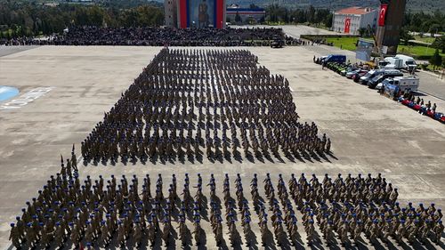 İzmir'de, Yeni Foça Jandarma Komando Teröristle Mücadele Okul Komutanlığında düzenlenen törende, 35. Dönem Jandarma Uzman Erbaş Komando Temel Kursunu tamamlayan 2 bin 545 kursiyer mezun oldu. Tören, saygı duruşu ve İstiklal Marşı'nın okunmasıyla başladı. Mezun olan uzman erbaşlar, komando andı…