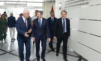 Çalışma ve Sosyal Güvenlik Bakan Yardımcıları Ahmet Aydın (sol 2), Adnan Ertem, Faruk Özçelik, Sosyal Güvenlik Kurumu (SGK) Başkanı Raci Kaya ve SGK birim amirleri ile "2024 Emekliler Yılı" kapsamında Türkiye Emekliler Derneği (TÜED) Genel Merkezi'ni ziyaret etti. Bakan Yardımcılarını TÜED Genel Başkanı Kazım Ergün (solda) karşıladı.