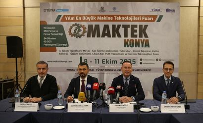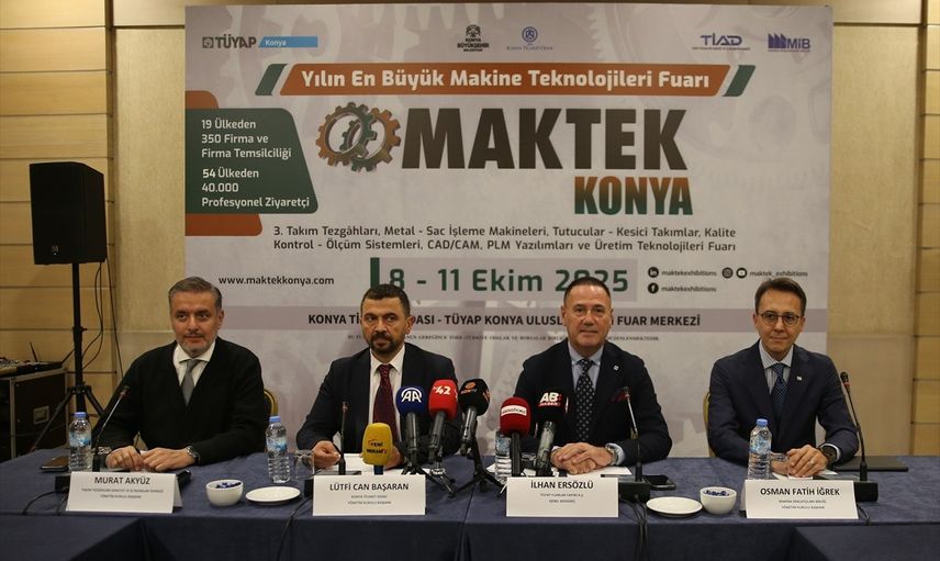 Takım Tezgahları Sanayici ve İş İnsanları Derneği (TİAD) ile Makina İmalatçıları Birliği (MİB) işbirliğinde düzenlenen, 400'e yakın katılımcı firmanın yer aldığı 2025 MAKTEK Konya Fuarı 8-11 Ekim'de yapılacak. TÜYAP Fuarlar Yapım AŞ Genel Müdürü İlhan Ersözlü (sağ 2), bir otelde düzenlenen basın toplantısında konuştu.
