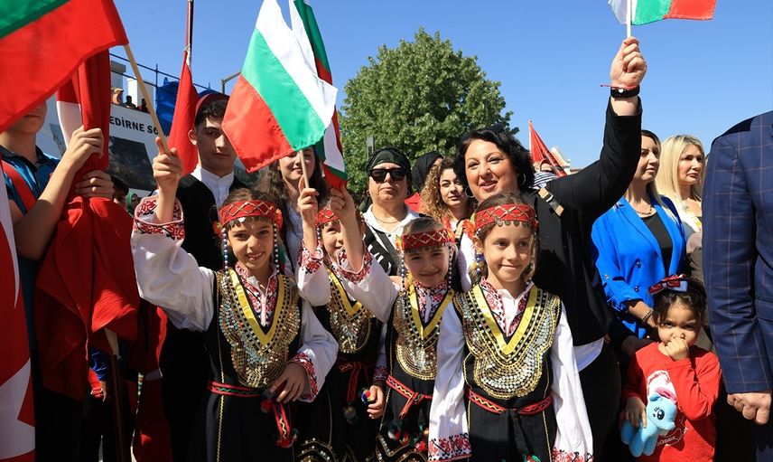 Edirne'de ayrıca, Balkan Çocuk Şenliği kapsamında çeşitli yerlerden gelen öğrencilerin yöresel kıyafetleriyle katıldığı törene protokol üyeleri, vatandaşlar ve çocuklar ilgiyle katıldı.