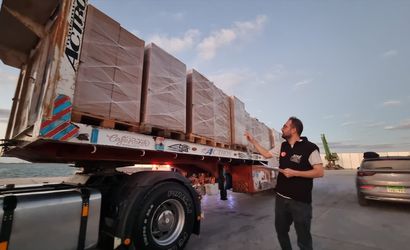 AFAD koordinasyonunda hazırlanan ve 17 sivil toplum kuruluşu desteğiyle 14 Ekim'de Mersin Limanı'ndan yola çıkan gemideki yaklaşık 900 tonluk yardım malzemesinin, Mısır'ın El-Ariş Limanı'ndaki indirme çalışmaları devam ediyor. İndirilen malzemelerin yarısından fazlasının tırlara yüklendiği bildirildi.