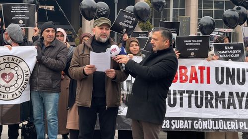 28 Şubat Gönüllüleri Platformu, postmodern darbenin yıl dönümünde Ankara Adliyesi önünde toplandı ve mağduriyetlerini dile getirdi.