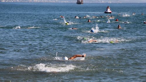 Türkiye Triatlon Federasyonu ve Alanya Belediyesi işbirliğiyle düzenlenen 34. Alanya Triatlonu başladı; halk etabında 130 sporcu Galip Dere Plajı'nda yarıştı.