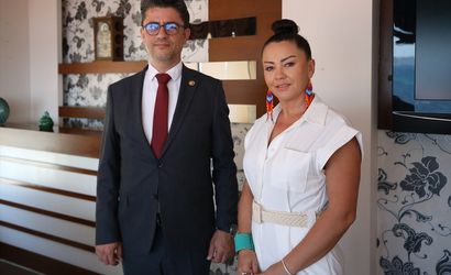Çanakkale Onsekiz Mart Üniversitesi (ÇOMÜ) Rektörü Prof. Dr. Cüneyt Erenoğlu (solda) ve Şehri Medeniyet Çanakkale Kültür Projesi Yapımcısı Elif Tayhan (sağda), kasım ayında Çanakkale'de düzenlenecek olan Şehri Medeniyet Kültür Projesi hakkında açıklamalarda bulundu.
