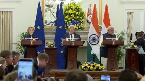 AB ve Hindistan 20 yıllık müzakerelerin ardından serbest ticaret anlaşmasını imzaladıAvrupa Birliği ile Hindistan, başkent Yeni Delhi'de düzenlenen zirvede yaklaşık 20 yıl süren müzakerelerin ardından kapsamlı bir serbest ticaret anlaşması imzaladı. Törene AB Komisyonu Başkanı Ursula von der Leyen, AB…
