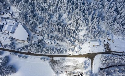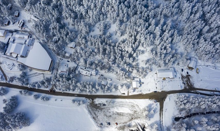 Abant Gölü'nün donmuş yüzeyi ve çevresindeki kar manzarası, dron ile havadan görüntülendi, bu da bölgenin güzelliğini bir kez daha gözler önüne serdi.