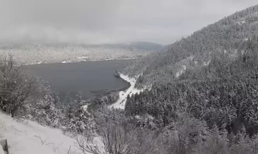 Abant Gölü Milli Parkı beyaza büründü, ziyaretçiler ve araçlar etkilendi