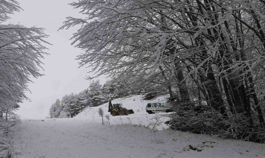 Abant Gölü Milli Parkı, kar yağışının ardından beyaza büründü. Kent merkezinde sağanak, yüksek kesimlerde ise kar şeklinde görülen yağış, dün ve sabah saatlerinde etkisini artırdı.