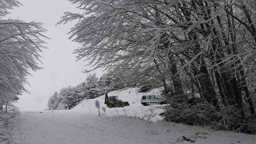 Abant Gölü Milli Parkı'nda dün ve sabah saatlerinde etkili olan yağış sonrası göl çevresi beyaza büründü; kar kalınlığı yer yer 10 santimetreye ulaştı.