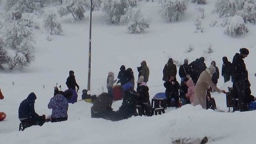 Abant Gölü Milli Parkı'nda Örencik Köyü Yamaçları Sömestrde Doğal Kayak Alanı Oldu