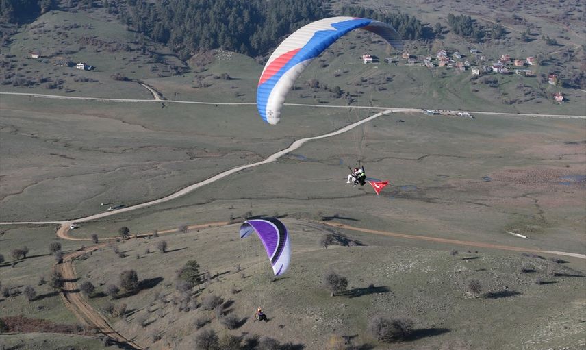 Etkinlik için farklı illerden gelen yamaç paraşütü tutkunları, parkın hemen yanındaki Örencik Yaylası'na çıkarak burada atlayış yaptı. Paraşütçüler, havada açtıkları Türk bayraklarıyla 101. yıl coşkusunu doruk noktasına taşıdı.