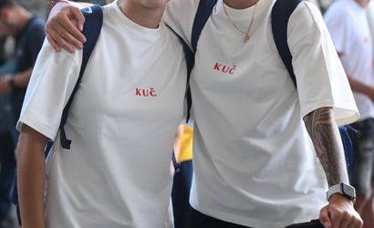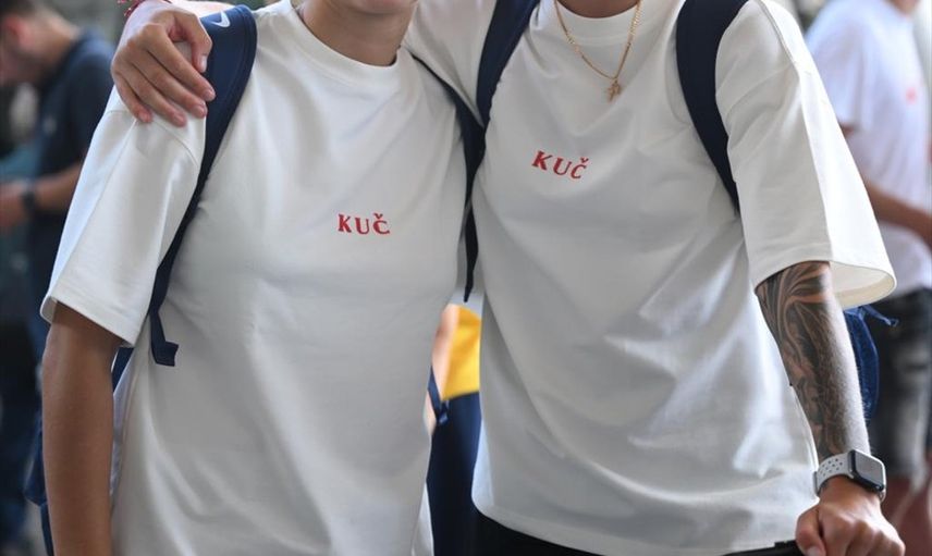 UEFA Kadınlar Şampiyonlar Ligi'nde Arnavutluk'ta oynanacak eleme maçlarına katılacak Ankara Büyükşehir Belediyesi (ABB) FOMGET, Tiran'a geldi. Kafilede ABB FOMGET oyuncuları Armisa Kuc (solda) ve Yana Derkach (sağda) da yer aldı.