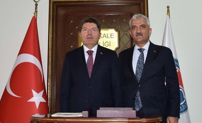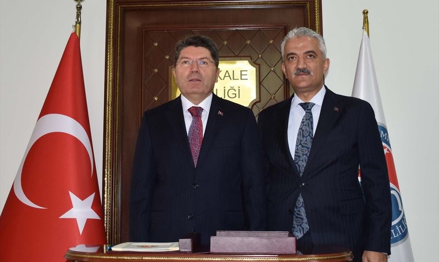 Adalet Bakanı Yılmaz Tunç (solda), Kırıkkale ziyaretleri kapsamında Vali Mehmet Makas'ı (sağda) ziyaret etti. Bakan Tunç, ziyarette Valilik Şeref Defteri'ni imzaladı.