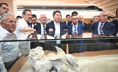 Adalet Bakanı Yılmaz Tunç (sol 2), Kayseri Büyükşehir Belediyesi bünyesinde hizmet veren Kayseri Bilim Merkezi'ni de gezdi.