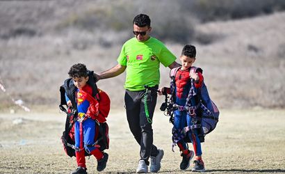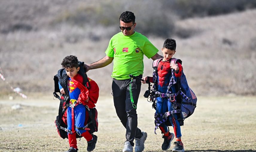 Adana'da düzenlenen 13. Kostümlü Yamaç Paraşütü Festivali, yaklaşık 250 sporcunun katılımıyla başladı. Farklı kostümler giyen çocuklar ve vatandaşlar, sporcular eşliğinde atlayış yaptı.