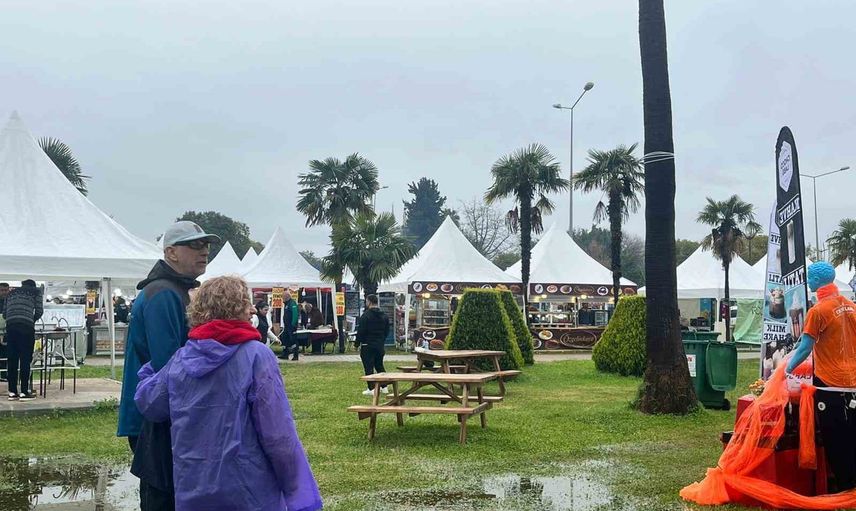 Ancak kentte gün boyu süren sağanak yağmur nedeniyle işletmelerin stantları zarar gördü.