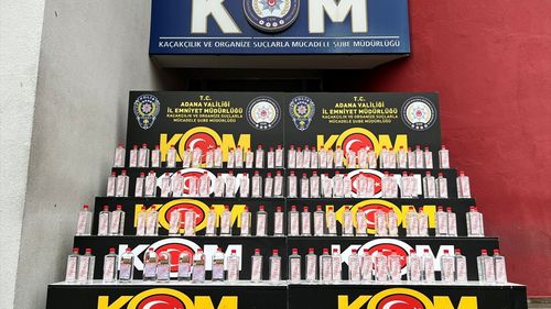 Adana'da yapılan operasyonda 383 litre sahte içki ve 166 aroma kiti ele geçirilirken, 3 kişi gözaltına alındı.