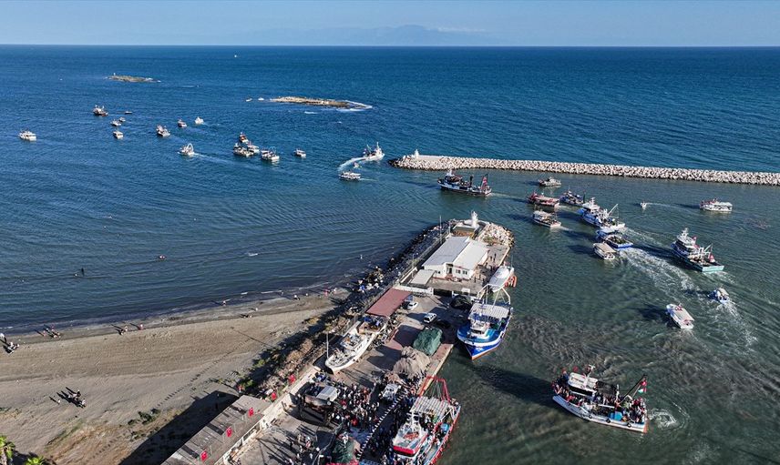 Karataş Limanı’nda düzenlenen etkinlikte grup, "Kararlıyız, Sumud'un Yanındayız" sloganıyla toplandı. Tekbirler getiren ve sloganlar atan katılımcılar, "Direnişe devam Gazze'ye selam", "Özgür Filistin" ve "İşgale Son" yazılı dövizler taşıdı.