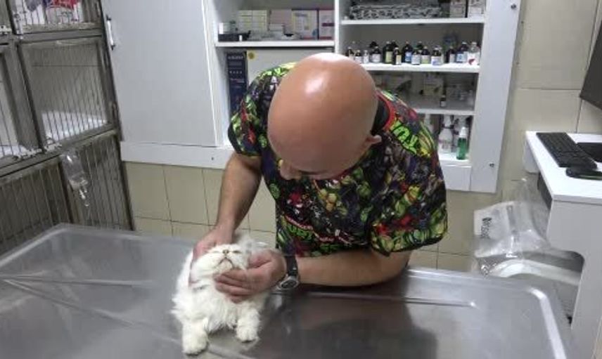 Kedi, Katya Gödeliner (37) tarafından sokakta perişan halde bulunarak veterinere götürüldü. İlk değerlendirme sırasında kedi aşı ve genel muayene için ön kontrole alındı.