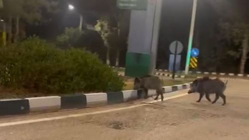 Adana Çukurova Üniversitesi yerleşkesine gece sürü halinde inen domuzlar, otomobille evine giderken iki vatandaş tarafından cep telefonuyla görüntülendi; hayvanlar ormana kaçtı.