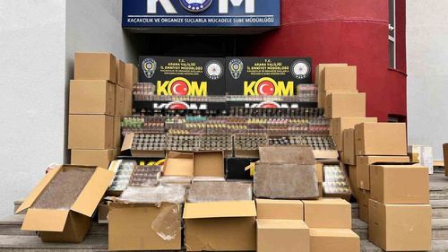 Adana'nın Yüreğir ilçesindeki depoda 400 bin makaron, 300 bin doldurulmuş sigara ve 1.720 paket nargile tütünü ele geçirildi; 2 kişi tutuklandı.