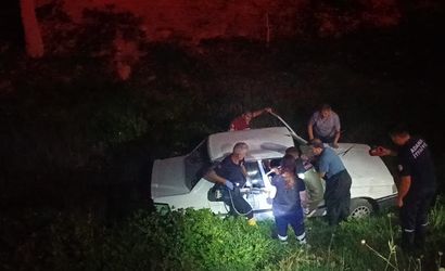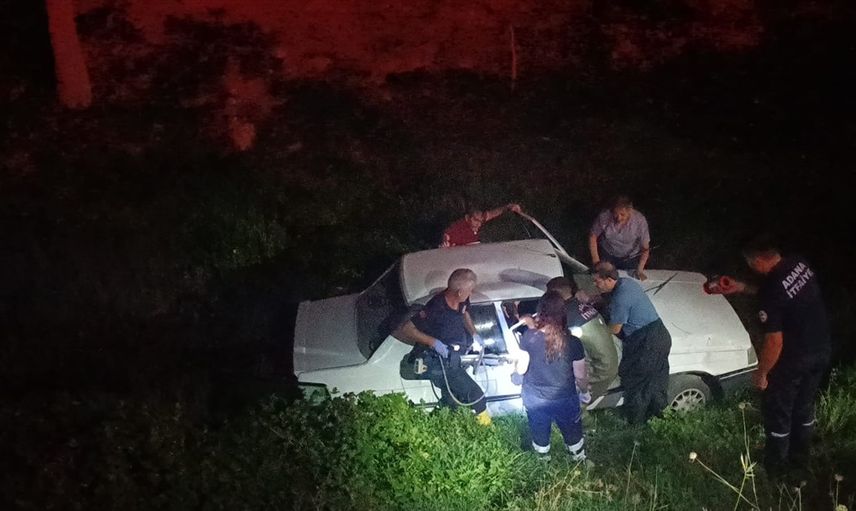 Adana'nın Kozan ilçesinde, otomobilin dere yatağına düşmesi sonucu 1'i ağır 2 kişi yaralandı.