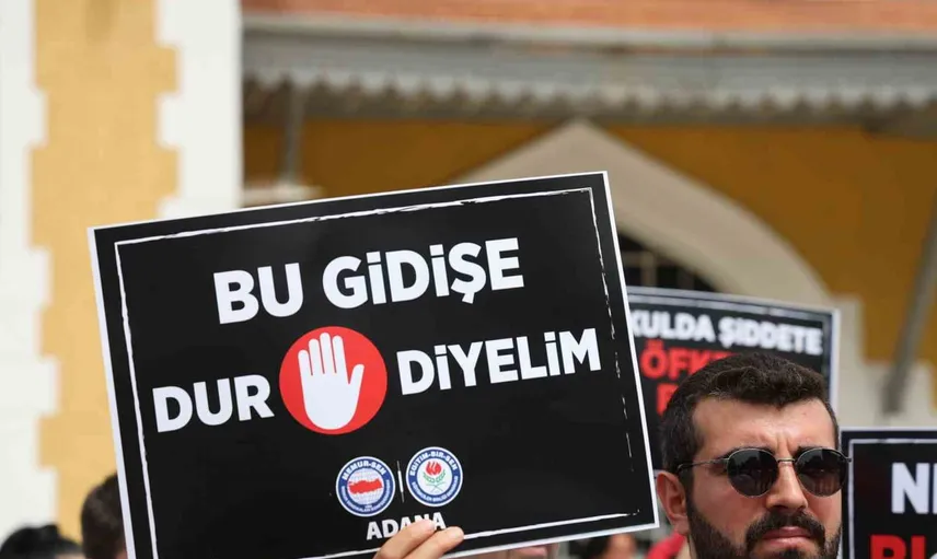 Merkez Seyhan ilçesindeki İstasyon Meydanı’nda bir araya gelen eğitimciler, okullarda güvenlik zaafına ve eğitime yönelik tehditlere karşı uyarılarda bulundu. Topluluk, şiddete karşı sloganlar atarak tepkisini gösterdi; eylem, basın açıklamasının ardından sona erdi.