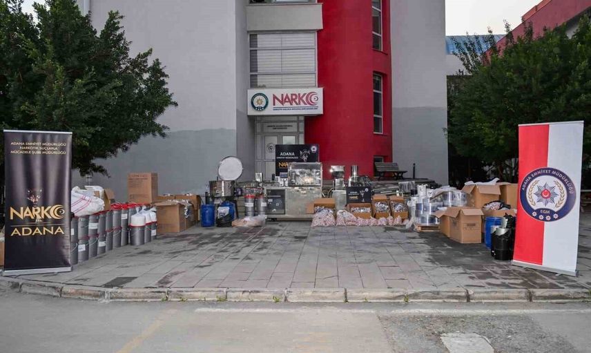 Adana’da geri dönüşüm merkezinde uyuşturucu üretimi: 262 bin 473 hap ve 833,5 kg hammadde ele geçirildi