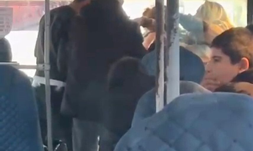 Otobüs içerisindeki yolcuların araya girmesiyle kavga güçlükle sonlandırıldı. O anlar, cep telefonu kamerasıyla kaydedildi.