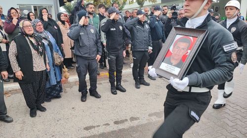 Adana'da lösemiye yenik düşen 27 yaşındaki polis memuru İsa Azmaz, Kozan'daki törenle uğurlandı; 8 aylık kızı babasının polis beresiyle katıldı.
