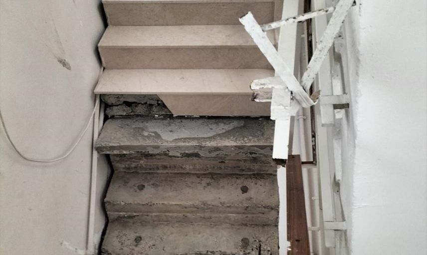 Mahsur kalanlardan Ekrem Adıyan (59), AA muhabirine yaptığı açıklamada, 6 Şubat 2023 tarihindeki depremler sonrasında merdivende çatlaklar oluştuğunu belirtti. Olay anında sabah 07.00 sularında gürültü ile uyandıklarını söyleyen Adıyan, “Bina yıkılıyor sandık, merdivenimiz çökmüş. Bina sağlam, herhangi bir şey yok. Herhangi bir yaralımız yok.” dedi. Adıyan, işe giden bir kızlarının kapıyı açtığı sırada üzerlerine çöken merdiveni zamanında fark ederek geri çekildiğini ve bunun sonucunda daha kötü bir olay yaşanabileceğini ifade etti.