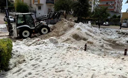 Türkiye’nin en sıcak illerinden Adana’da dün akşam etkili olan dolu ve sağanak yağmur, merkez Çukurova ilçesine bağlı Huzurevleri Mahallesi'nde erimeyen buz kütleleri oluşmasına yol açtı. Sabah saatlerinde kütleleri gören çocuklar, soluğu mahalle parklarında aldı.