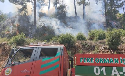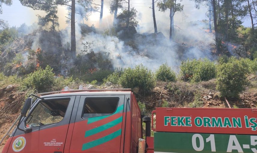 Adana'nın Feke ilçesinde ormanlık alanda çıkan yangına havadan ve karadan müdahale ediliyor.