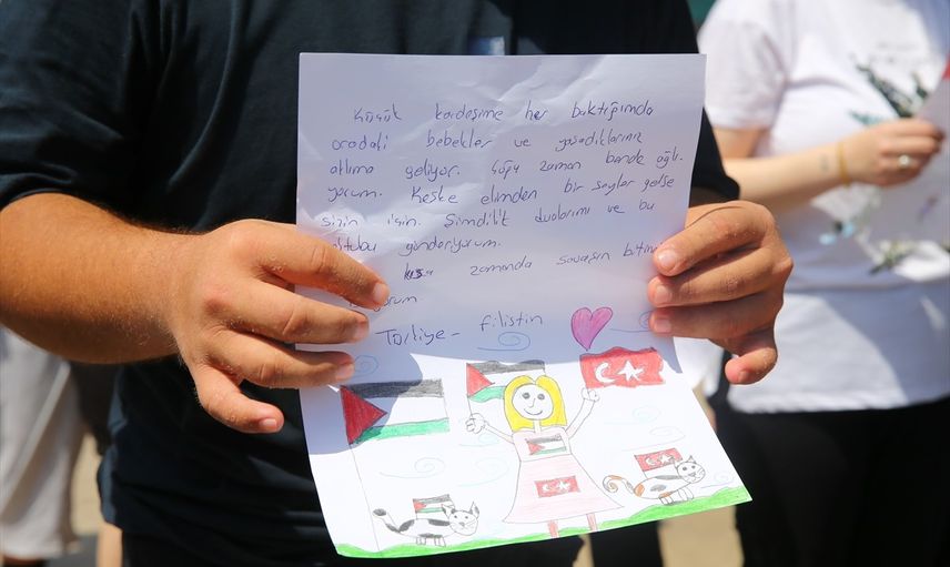 Gönüllü Anneler Topluluğu Başkanı Gülşen Akgöz, gazetecilere yaptığı açıklamada, Gazze'de yaşanan zulme ses olmak istediklerini söyledi. Akgöz, 'Her gün haberlerde izlediğimiz acı tablo, gerçekten kalbimizi çok acıtıyor. Yavrularımız, çocuktan çocuğa bir gönül köprüsü kurdu. O mektuplarda barışı, sevgiyi, umudu ve hayalleri ifade ettiler. Belki bu mektuplar kıyıya ulaşıp ellerine geçecek, belki de ulaşamayacak ama inanıyorum ki bugün yüreklerde kocaman bir iz bırakacak.' dedi.