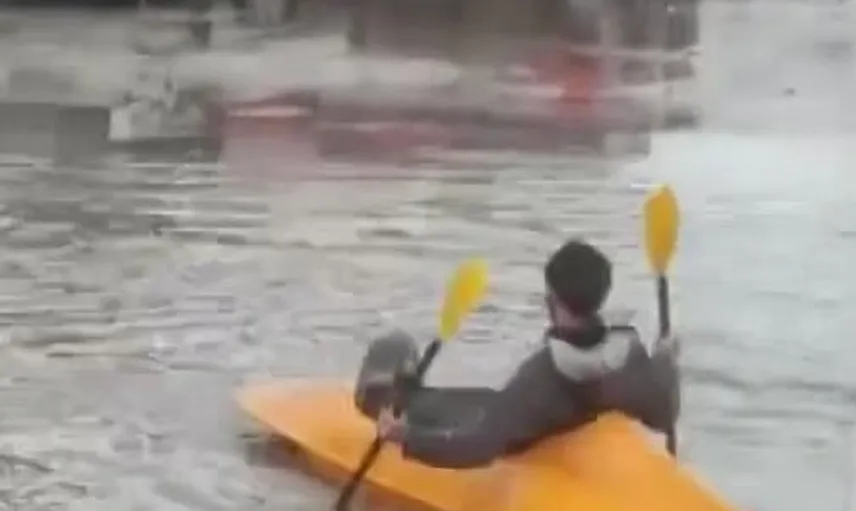 Kayda alınan görüntülerde, sokaklardaki su birikintileri ve kanosuyla gezintiye çıkan kişinin sahnesi yer alıyor. O anlar, yağışın kentte yarattığı tablonun somut bir örneği olarak kayda geçti.