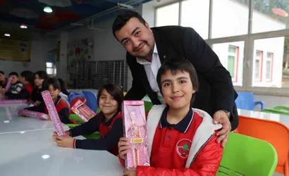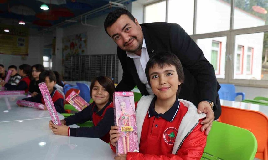 Kozan'da Şehit Mehmet Oflaz Yatılı Bölge Okulu'nda 80 öğrenciye oyuncak dağıtıldı