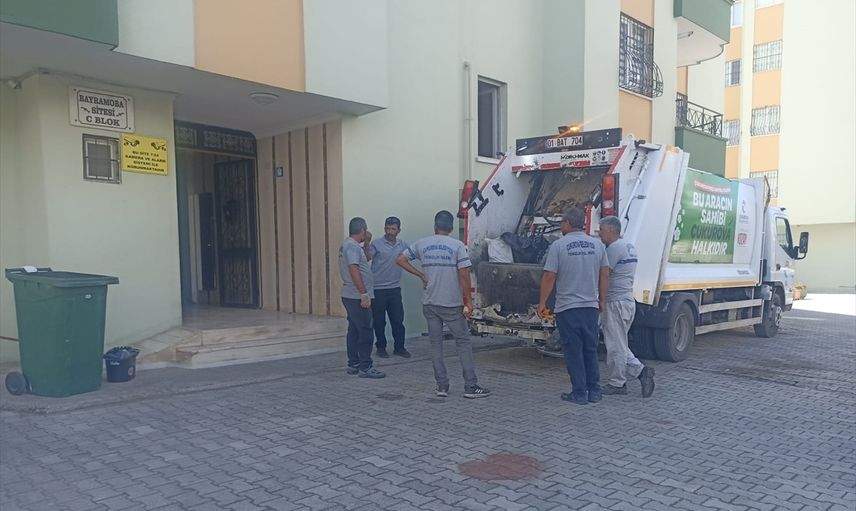 Adana'nın Çukurova ilçesi Toros Mahallesindeki Bayramoba Sitesi'nde yaşayan vatandaşların şikayeti üzerine, belediye ekipleri polis eşliğinde bir konutta temizlik çalışması yürüttü.