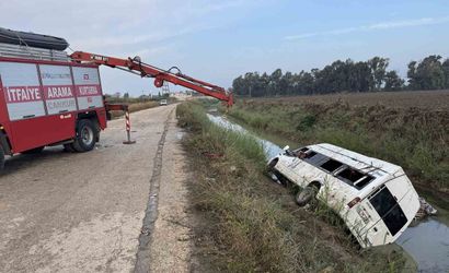 Adana'da tarım işçilerini taşıyan minibüs sulama kanalına devrildi