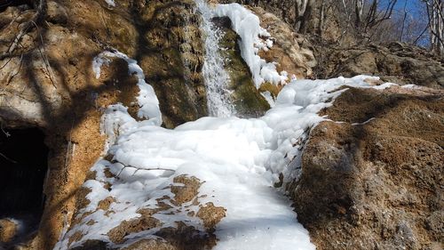 Adana'nın Saimbeyli ilçesindeki Obruk Şelalesi, soğuk hava nedeniyle buz tutarak etkileyici sarkıtlar meydana getirdi.
