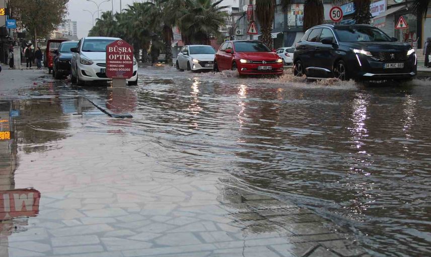 Adana Deniz Mahallesi'nde içme suyu borusu patladı, Mithatpaşa Bulvarı'nda yollar göle döndü