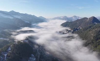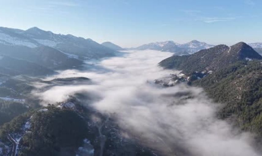 Adana'nın Feke ilçesinde sabah saatlerinde ortaya çıkan sis, kızılçam ormanları ile karlı dağların arasında sakin ve fotoğrafik bir görünüm sundu. Üskiyen mevkiinde dağların arasına yayılan sis, bulutlardan görünen evler ve orman dokusuyla birlikte doğal bir tablo oluşturdu.