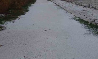ADANA'NIN KARATAŞ İLÇESİNDE DOLU YAĞIŞI MEYDANA GELDİ. YOLLAR BEYAZA BÜRÜNDÜ.